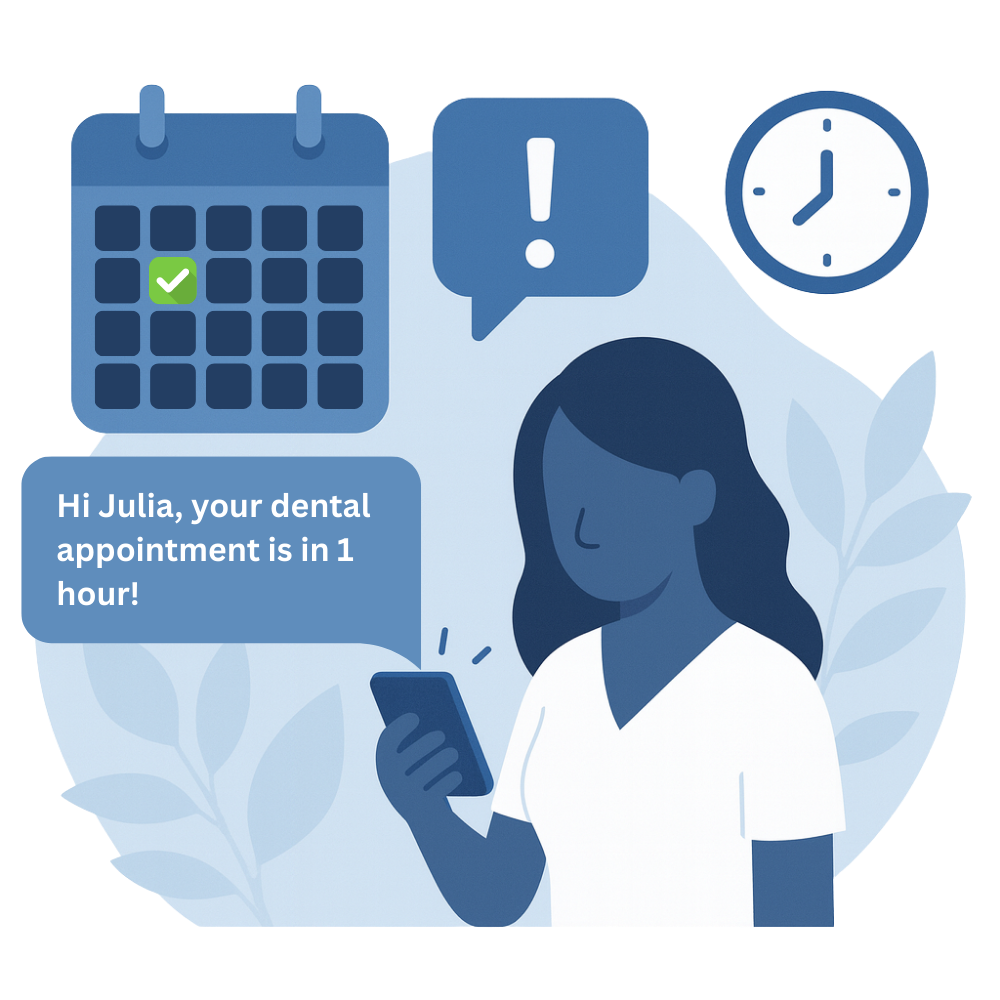 Patients often forget their appointments, causing wasted chair time and lost income. Staff waste hours calling for reminders.